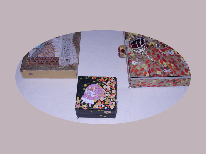 Insufficiente cioè il decorare più sfrenato (tanto che i pezzetti di carta - centinaia? migliaia, probabilmente: ormai non li conto più!) ecco affacciarsi la "narrazione": e il teatro, il costume, la moda, intervengono ad animare le mie scatole e scatoline... perché sia "il fin la meraviglia"!